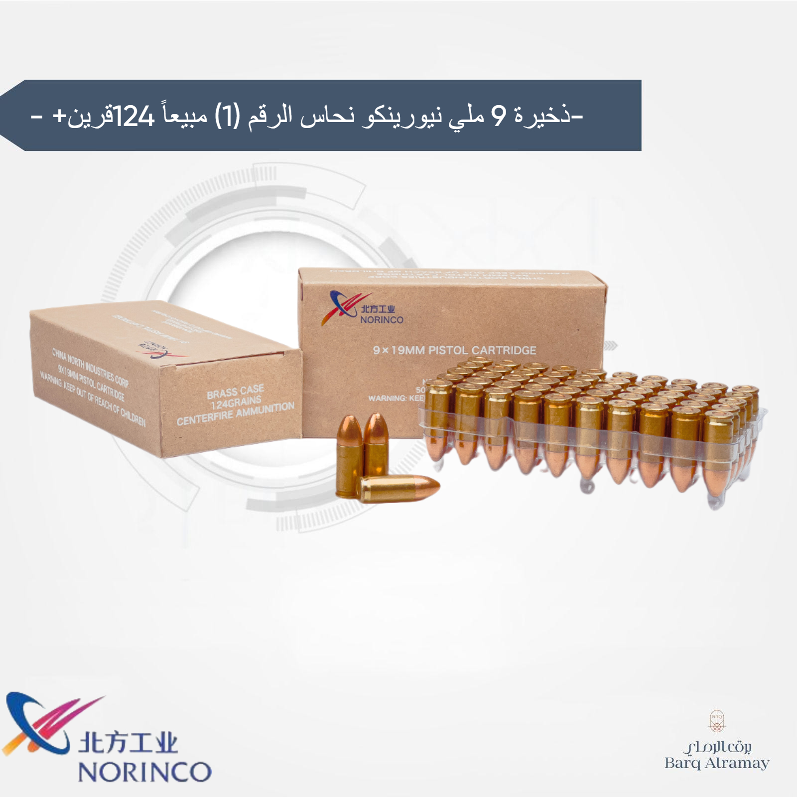 ذخيرة 9 ملي نيورينكو نحاس الرقم (1) مبيعاً 124قرين